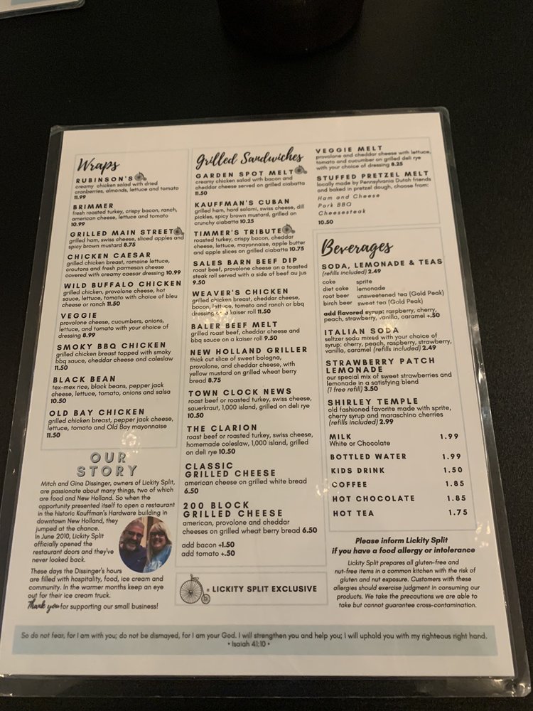 Introducing Lickity Split, an enchanting destination for soup and sandwich lovers located in New Holland, PA. This charming eatery not only takes reservations but also offers convenient takeout and delivery options. With a menu that excels in both creativity and flavor, Lickity Split features delightful dishes like their homemade dill pickle soup and various scrumptious sandwiches, including a standout Cuban and a classic cheeseburger that rivals even top burger joints.